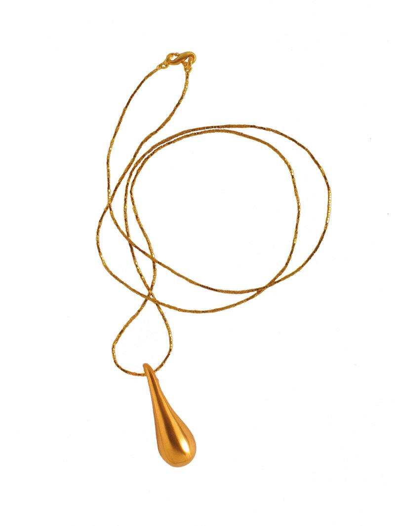 Long beaded necklace - drop pendant - in goldplated sterling silver