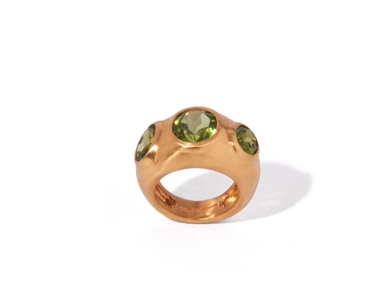 Rounded band ring in goldplated sterling silver - three semiprecious stone - peridot, rubylite